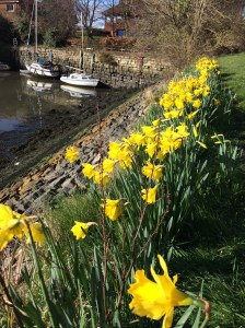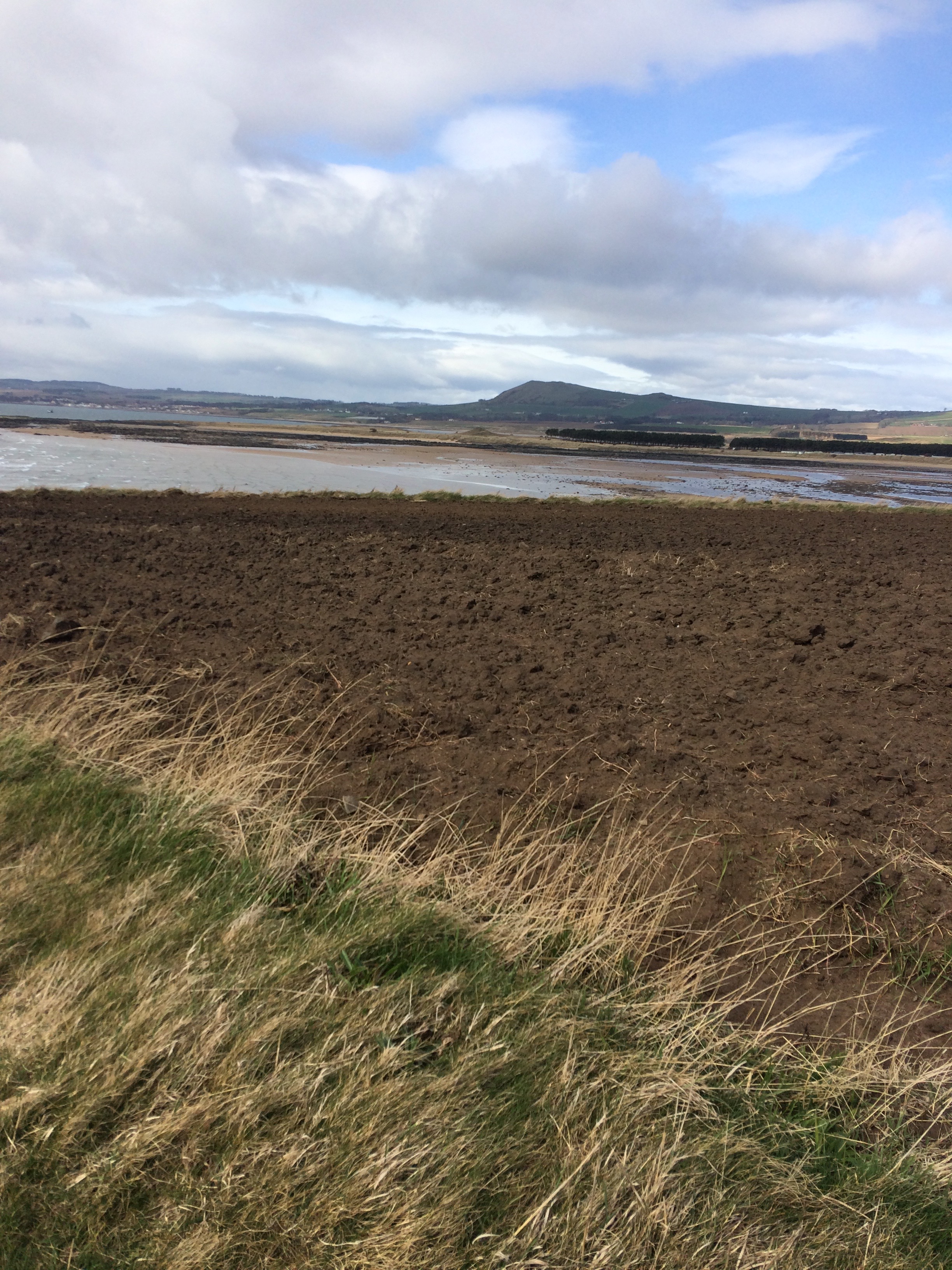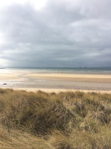 Instead we saw lapwings and their fluffy babies, and above, the noise of peewits, gulls and starlings. The fields were covered with yellow flag irises just about to burst open, big daisies, little daisies, buttercups and dandelions. There was often a chilly breeze but the sun shone continuously. The sea, the constant sea with the long white sandy beaches was intensely blue.