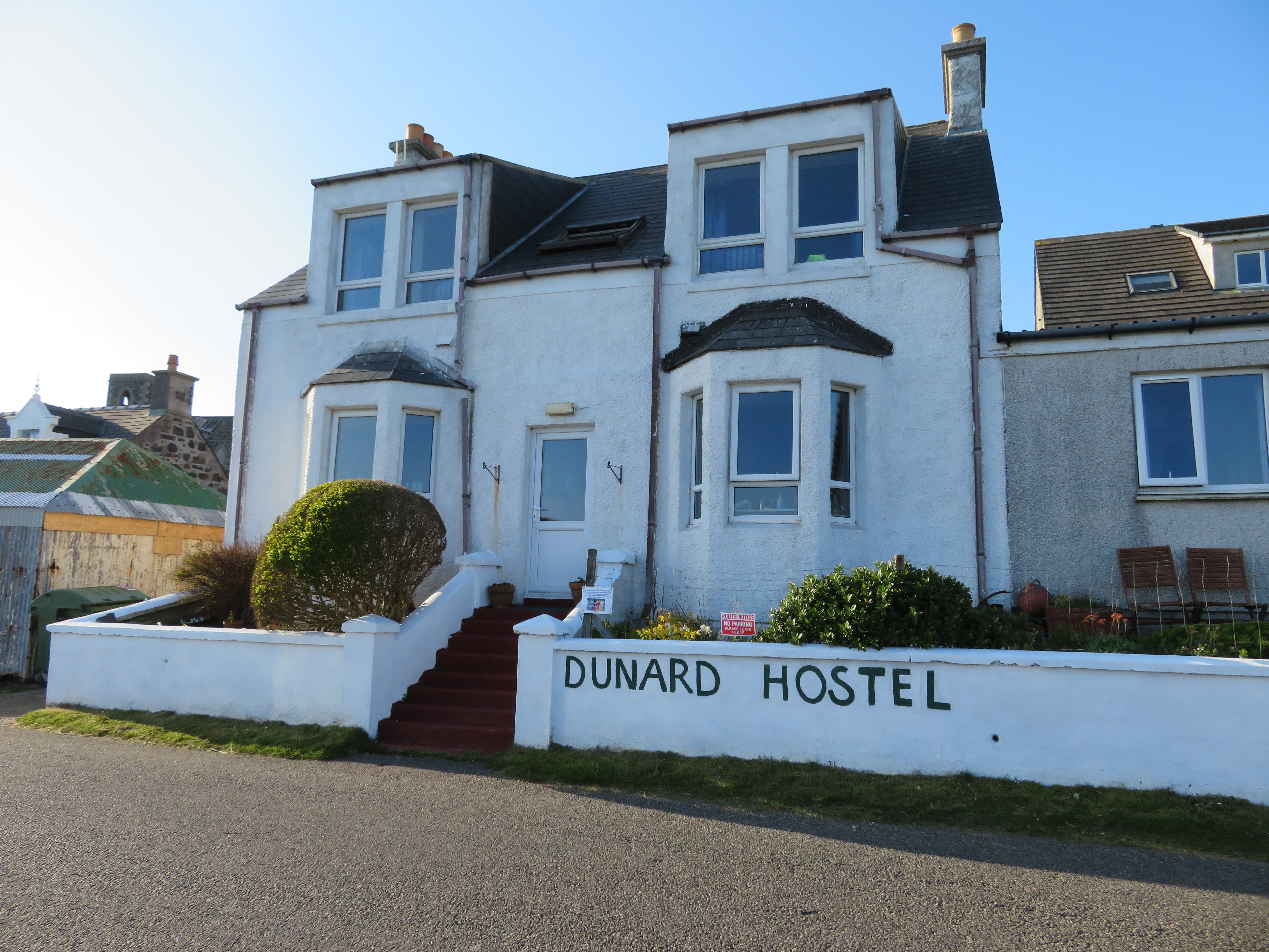 John and I settled into the Dunard Hostel overlooking the sea and went looking for a meal in one of the two hotels.