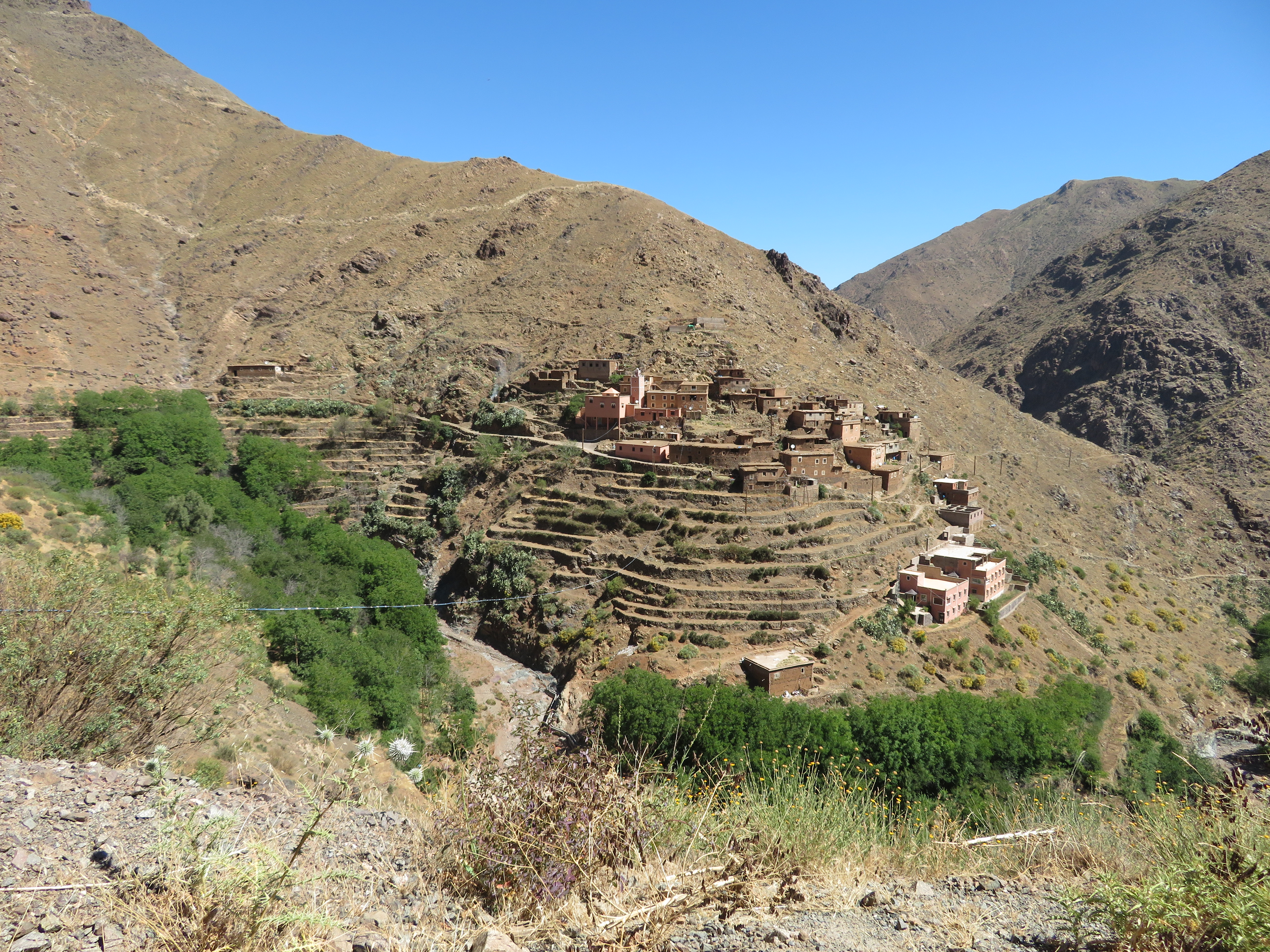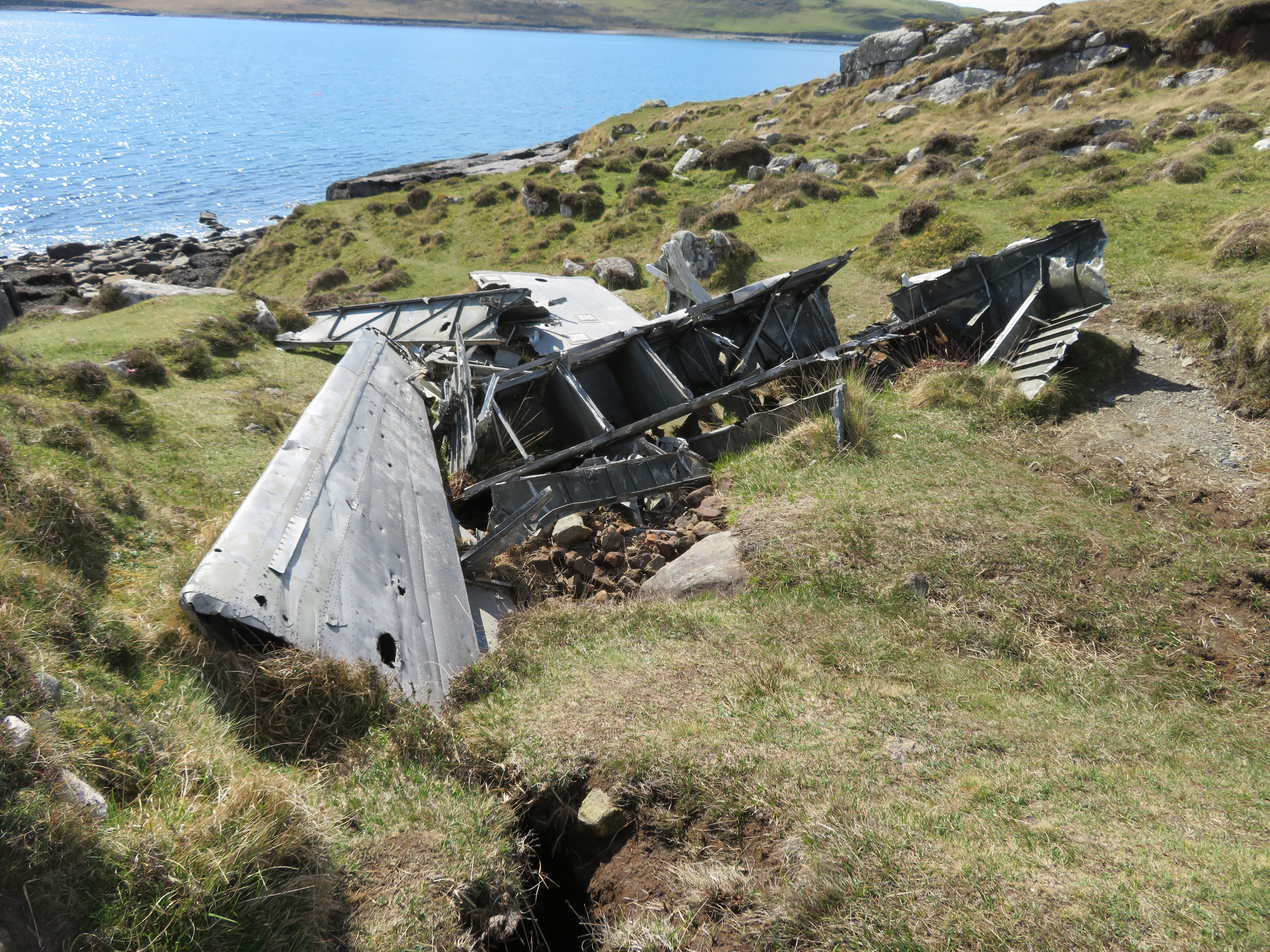 We passed the remains of an old military plane that had crashed on a hillside, killing three of its nine men crew. The fuselage and wings are still as they were, and a memorial stone.