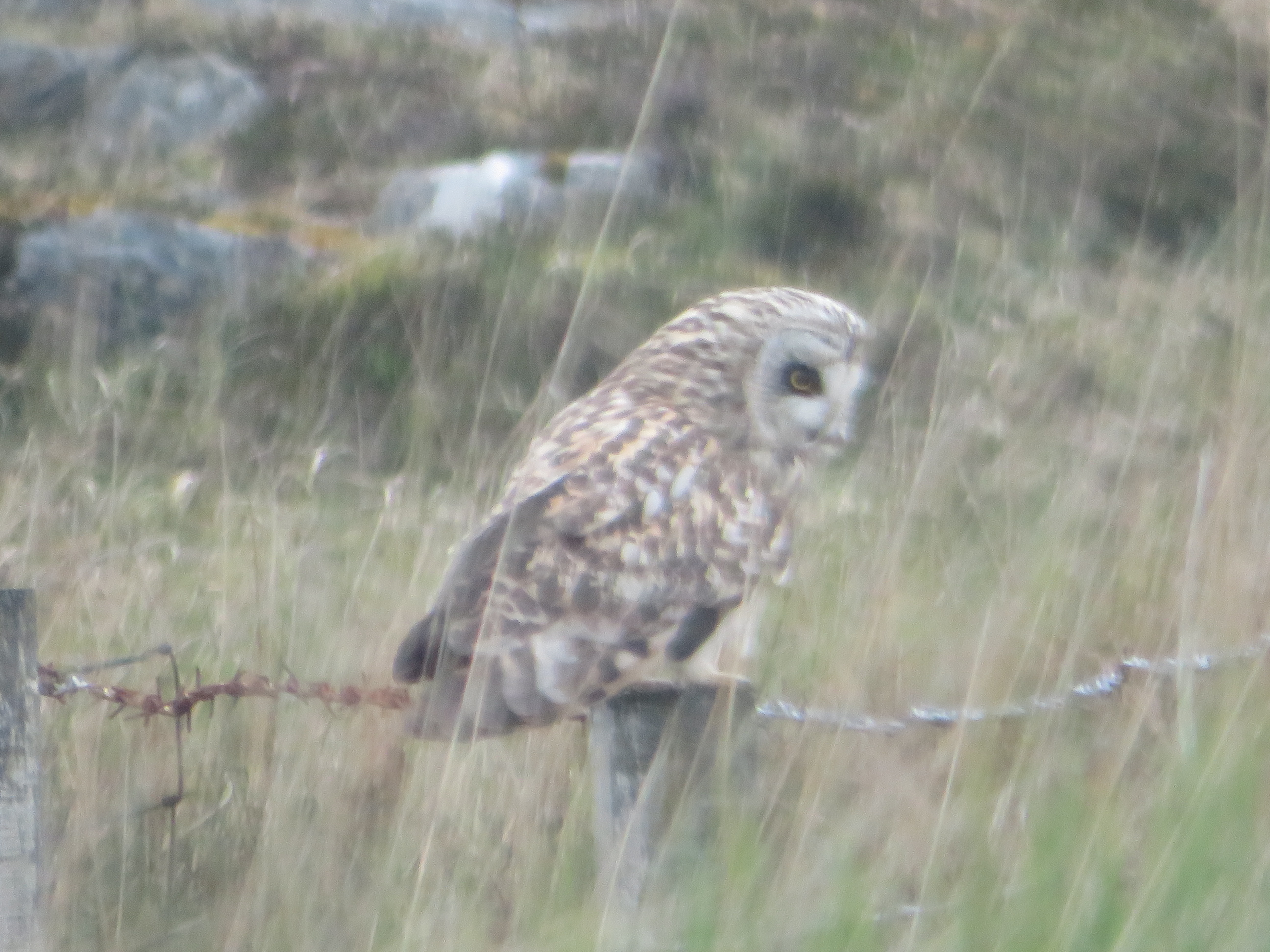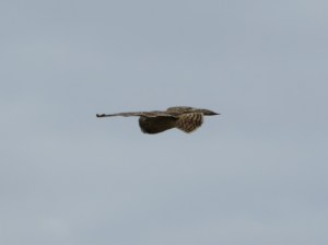 On our way, a short eared owl suddenly flew up and sat on a post next to our car.
