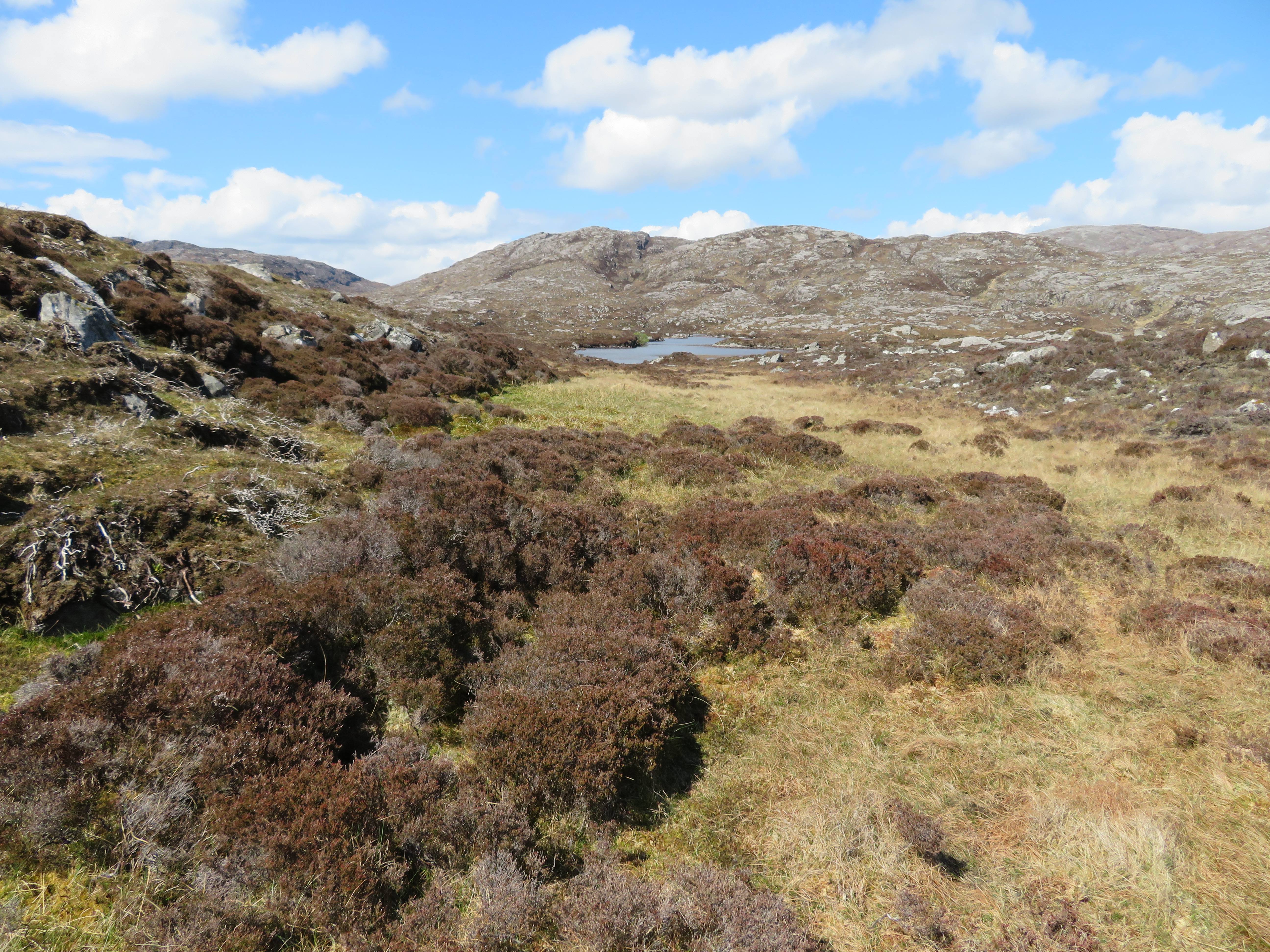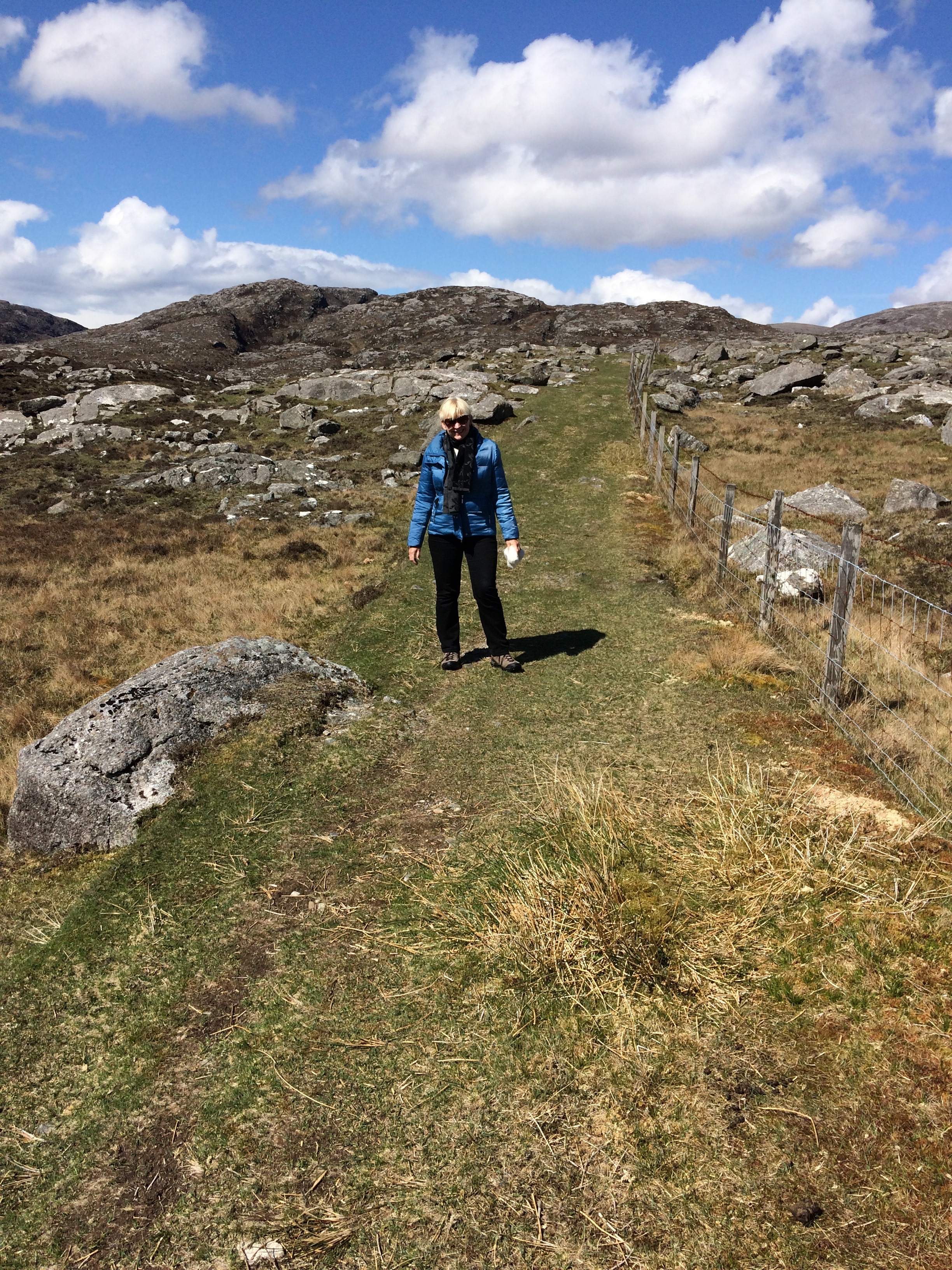 Peter May, the author, has written some very good stories of the Hebrides, including the Lewis Trilogy and the Coffin Road. We thought, as the day was dry and the sun was out, that we should try and find the said road and try and walk some of the way. The Eastern side of South Harris has shallow soil and rocks. Some of the displaced population from the west side settled here after the Clearances, trying to eke a living on this side of the island. But when they died, their coffins had to be carried along the track which is now called the Coffin route back to their home land and back to the deep soils of the west. We set off from Likisto and clambered up the hill, and over the moorland.