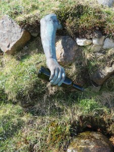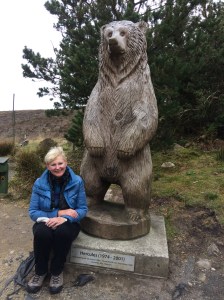 The islands are not renowned for their trees, as nothing will grow on the acid soil, but the Forestry Commission have persisted and they have got quite a little forest of connifers growing well. Amongst it all is the grave of the grizzly bear, Hercules. I couldn’t believe my eyes, as I had taught the Robin children in Dornie way back in 1987 and knew the family quite well, and had heard about their pet bear. I felt quite proud to have finally met up with him, in his final resting place.