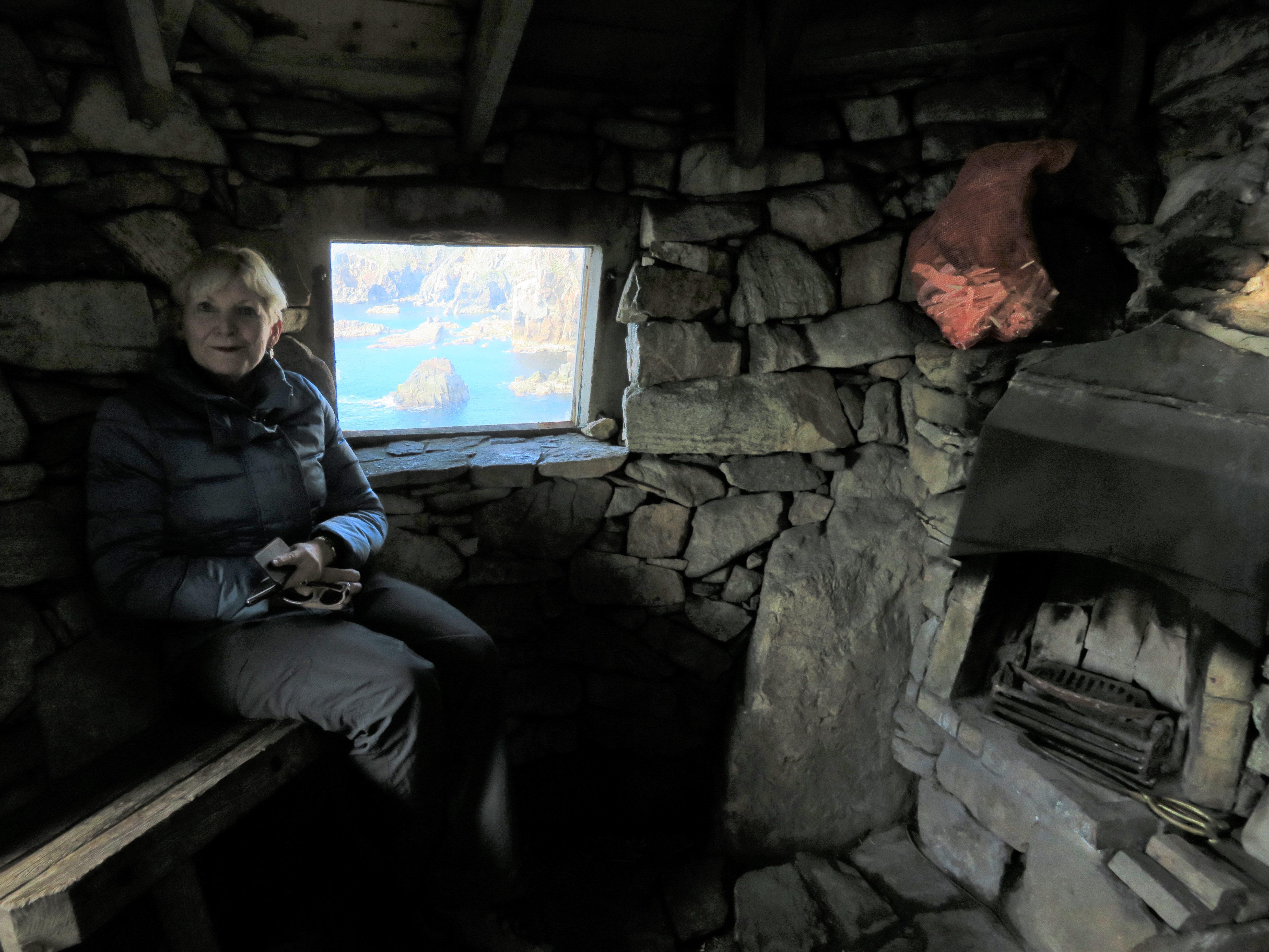but best of all the bothy built into the rocks. It is camouflaged and beautiful. Inside it has the feel of a Mongolian yurt, as it is built in the same design. I would not really like to venture out in the dark, the fall would be fatal. But the setting is magical.