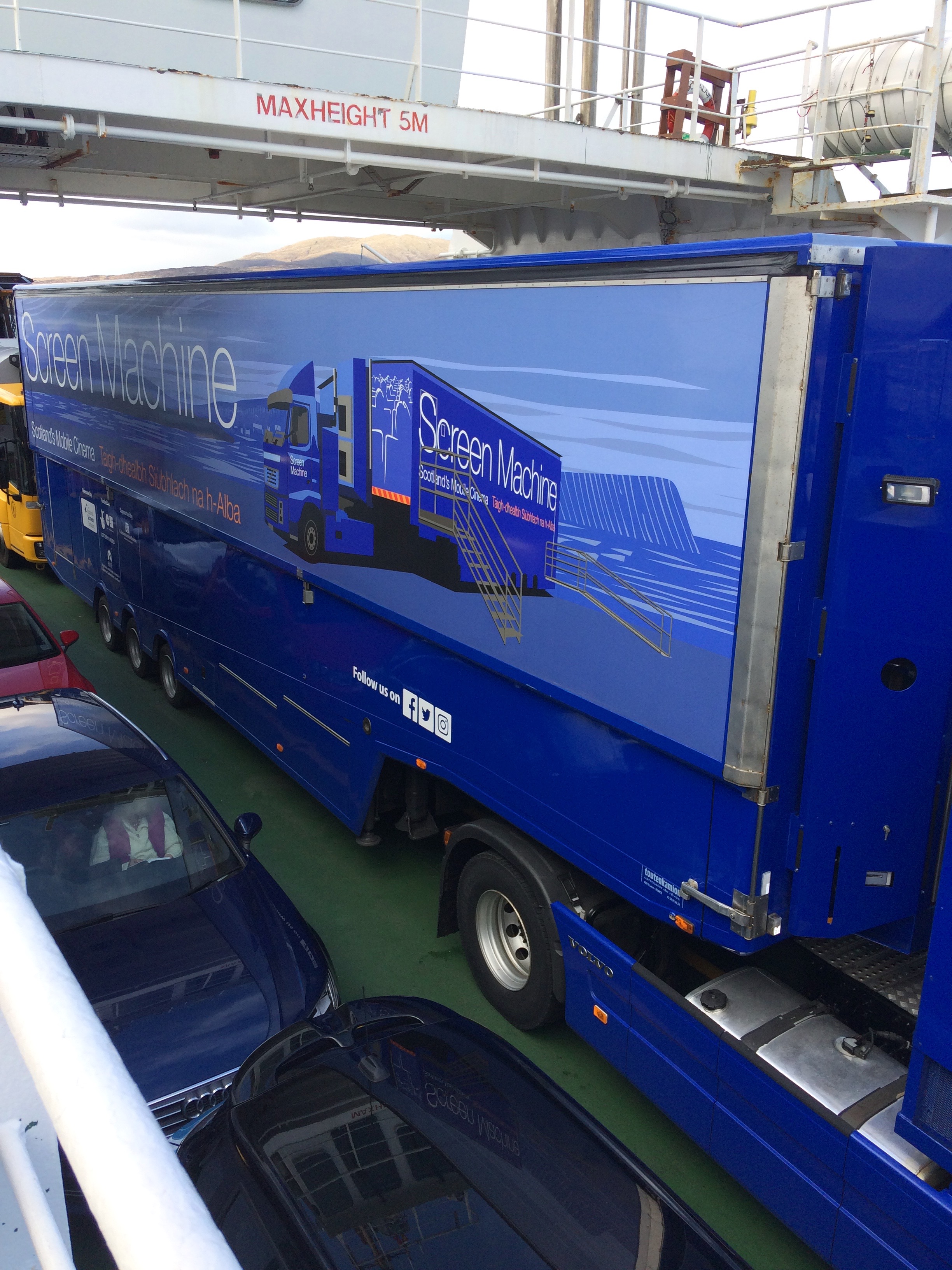 We spotted the Screen Machine lorry parked on the ferry. It was going on to the Borrodale Hotel in Daliburgh for its next show.