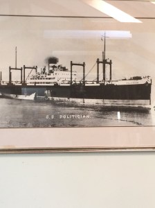And the next day we sailed away, over the Sound of Barra to the island of Eriskay. I was looking for signs of the SS Politician, famous for the cargo of whisky that it had on board during its fateful voyage on the 4thFebruary 1941. We bought the book, Scotch on the Rocks, written by Arthur Swinson, which is the true story behind Whisky Galore, and learnt of the struggle of the excisemen trying to prevent looting. But was it looting? It was really saving the whisky from certain loss for ever. A good read, but disturbing.