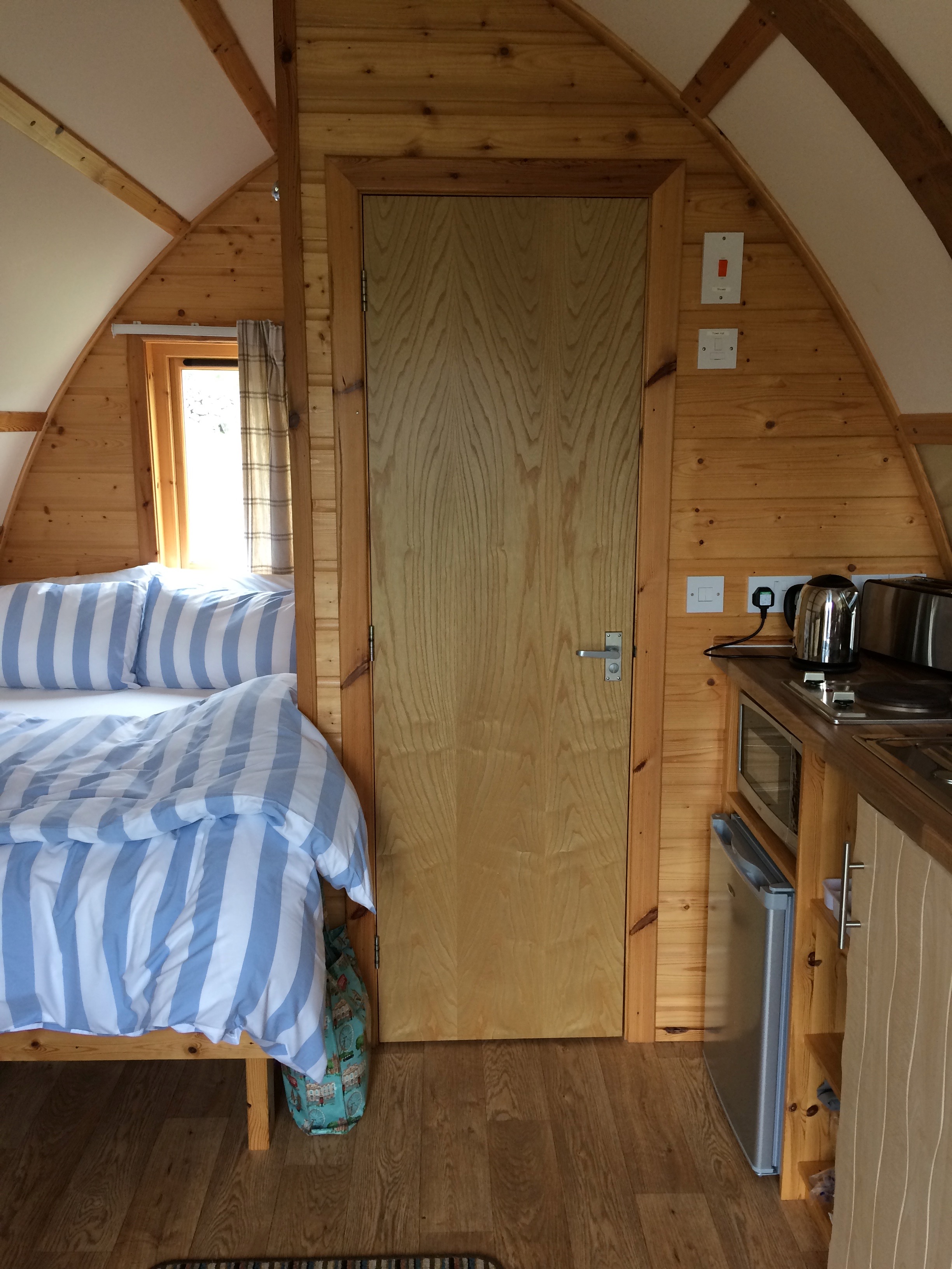 The evening was dark, the wind was whirling about and rain splatted the windows. It did not bode well, but inside our little modern cave it was cosy, and our hosts, Tosh and Jed, had thought of everything.