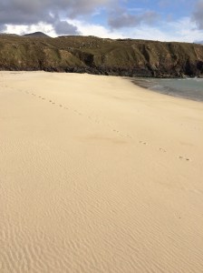 But the mountains of Harris and sparkling white shell beaches of Sheileboist and Losgaintir made up for the initial fray of bad manners that we encountered. The views were breath-taking, and we walked out on the sand and marvelled.