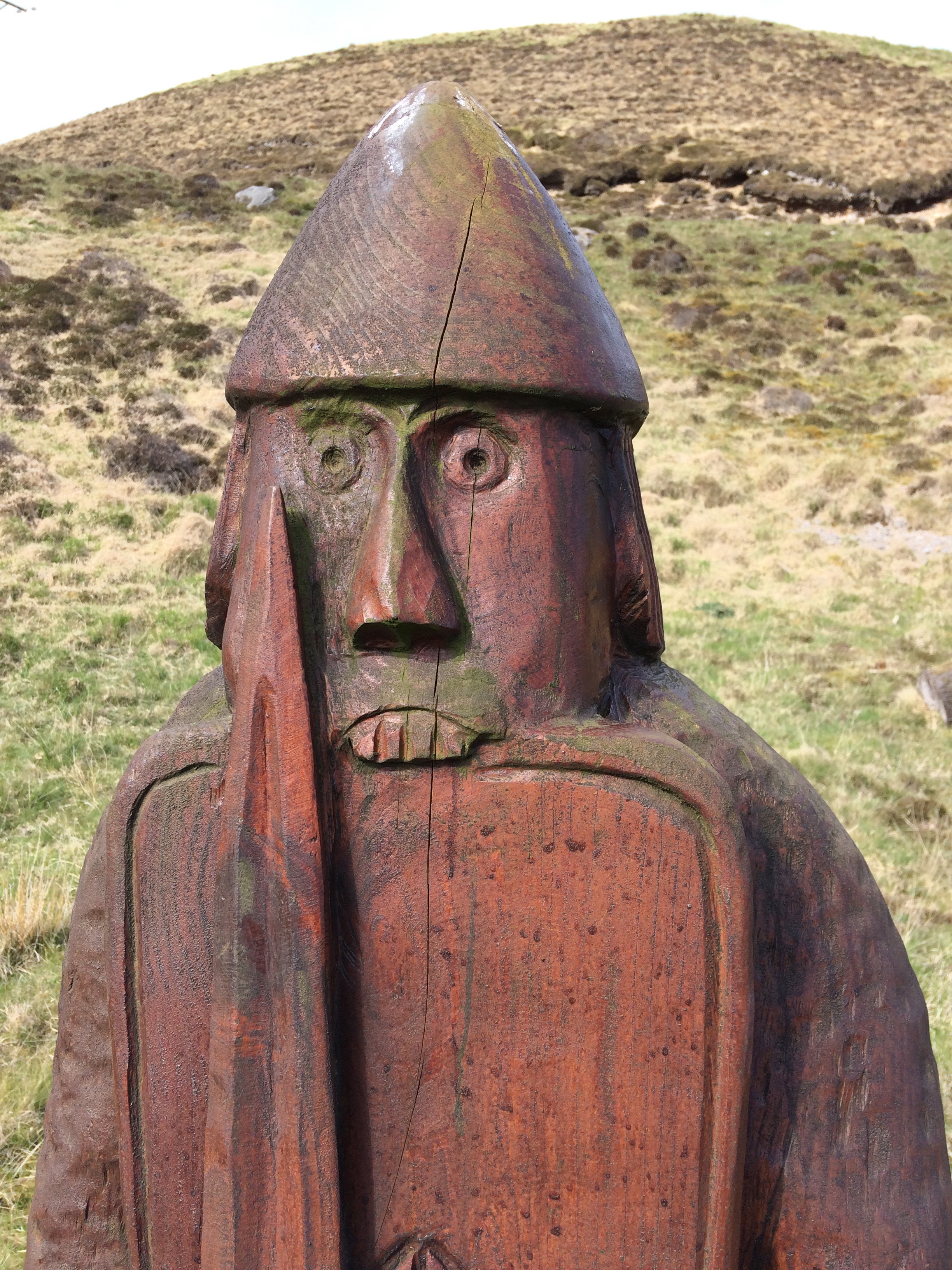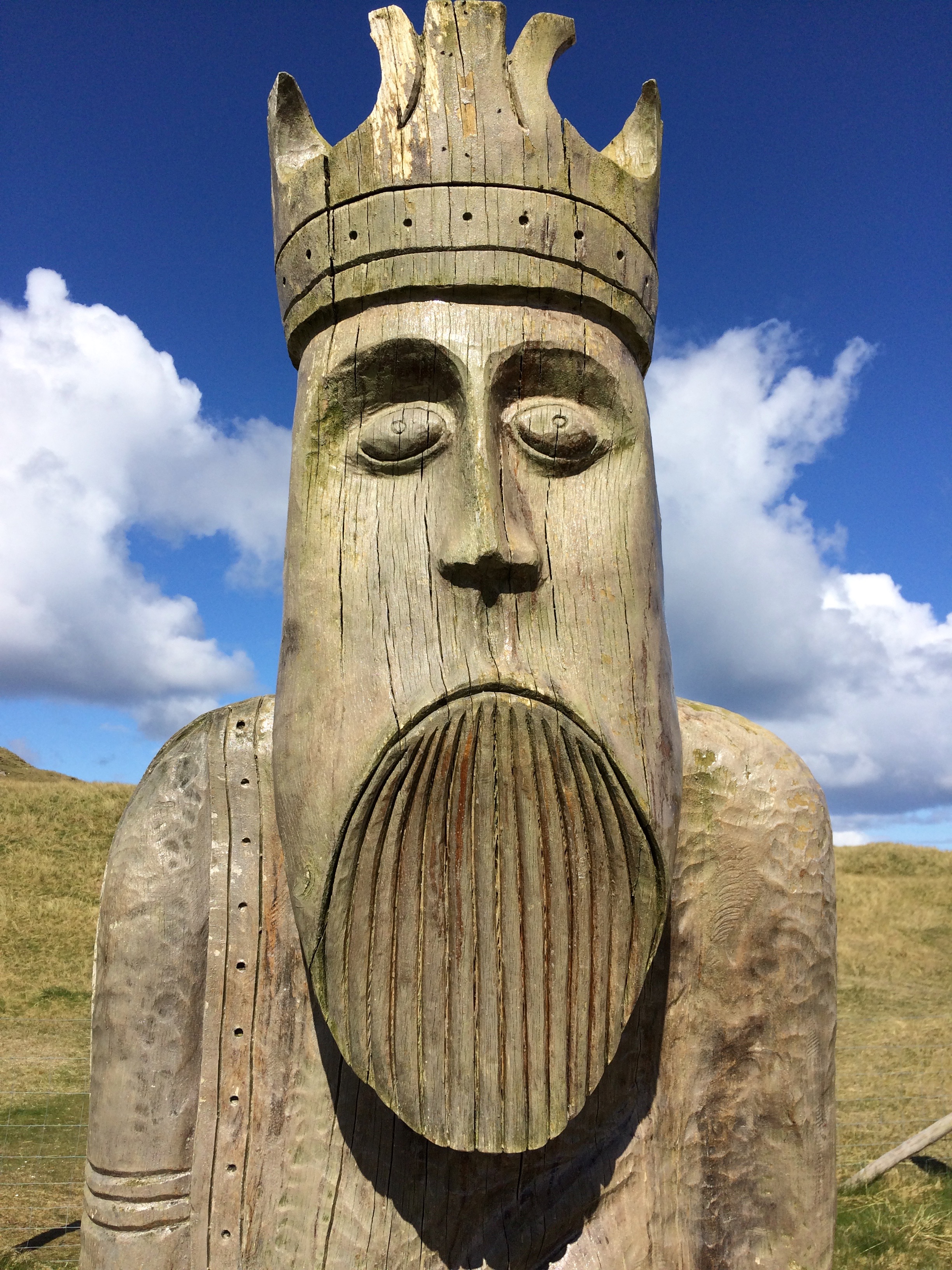 The next day we found the beach where the Lewis Chessmen had been discovered way back in 1832. Artists have had fun representing them, and we enjoyed all the different statues in all the different places, made from wood or cement. Of course the real ones are in the British Museum and the National Museum of Scotland.