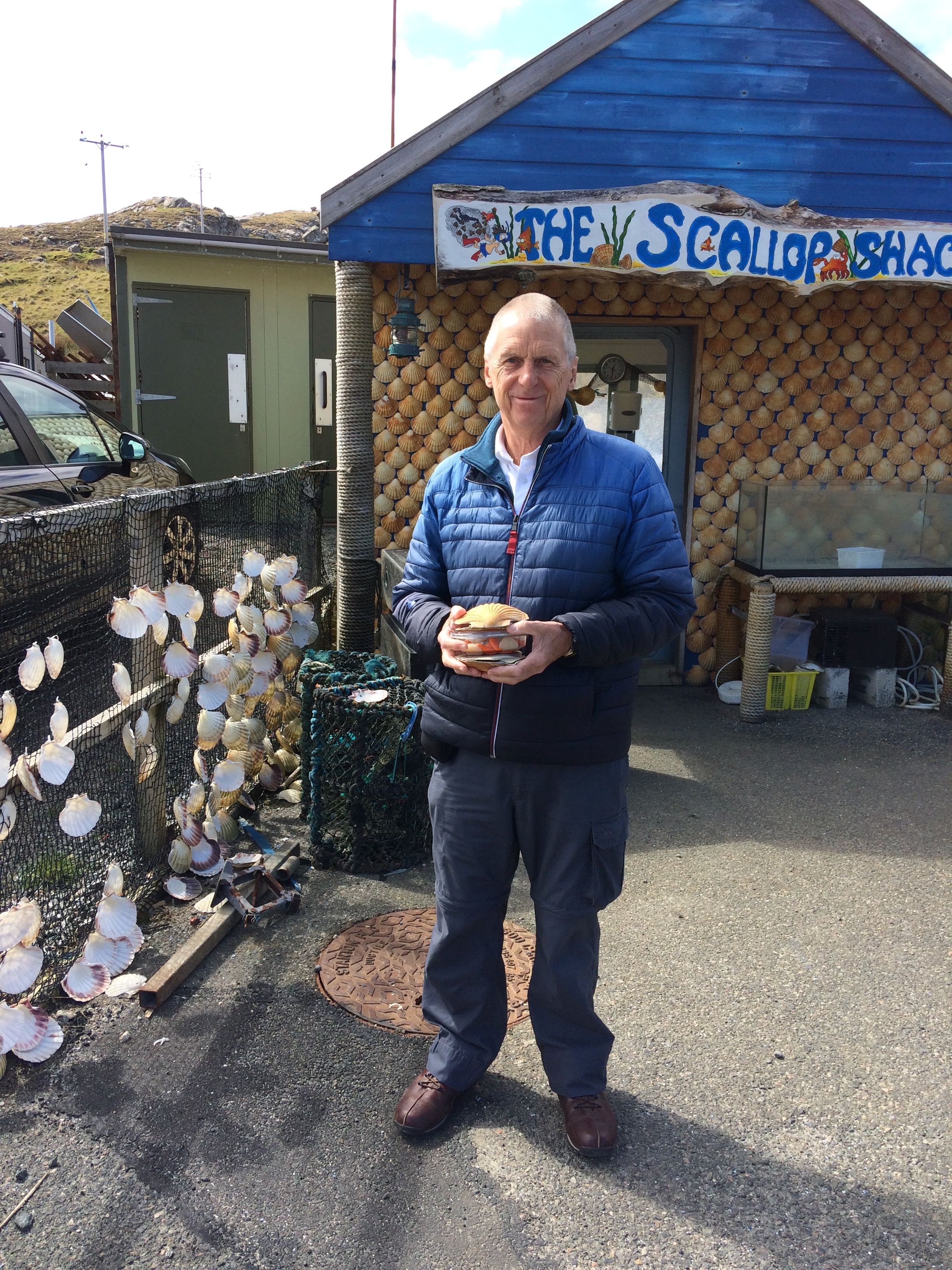 Afterwards we sauntered back, appreciating the Post Office, the very one filmed in Whisky Galore, then marvelled at a purple Maclaren sports car with a very low undercarriage. A man came out of the Pub so I asked him if he was Bob. The number plate was BOB69. He told me that Bob was still having his pint, but yes indeed that was his car, and the owner of the hotel had a red Ferrari. I noted the uneven roads and the potholes. We then came to a great blue lorry parked down by the pier next to the ferry. On it was written ‘Screen Machine’ and it was the travelling cinema that serves the people of the Islands and part of the Highlands. How exciting our time was going to be, so much entertainment that we had not envisaged.