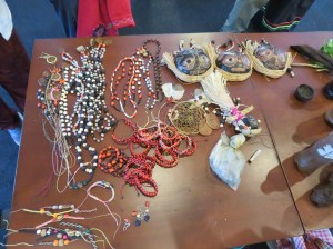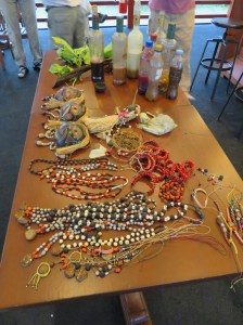 The place was alive with birds and bird watchers. Exhausted we walked back along the road, and met Iain, or Bucky as he is known. He makes everything, black houses, motorbikes, fancy statues etc. out of wood, and he very kindly parted with a necklace of fishing buoys that I asked for. I have plans. John just raised his eyes.
