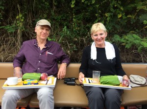 We finally made it to the Community Centre, and were thinking of how to get back, for obviously we hadn’t booked any public transport. But just then, along came our friendly PC and his partner in the panda car. ‘Just you hang about while we have our cake and coffee and then you can come back with us, handcuffs are optional!’